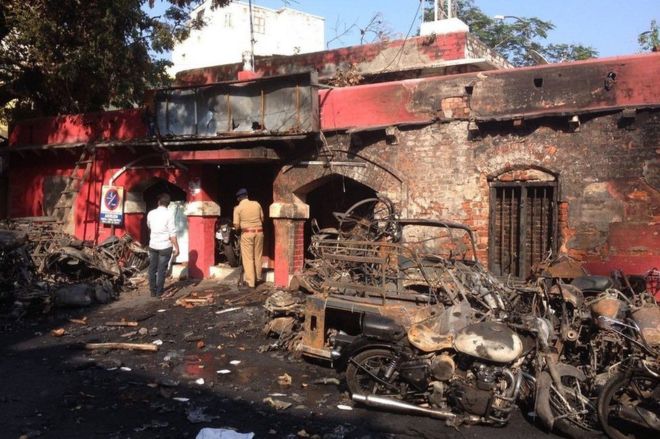 | Protesters burnt vehicles during Monday's protests |